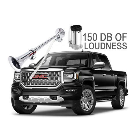 The Horn Kings 150db truck horn has a powerful electrical compressor that allows you to use it anytime and doesn't require any air tanks. Easily installable to your existing horn system/separate switch. Enjoy the benefits of 150 db of loudness.